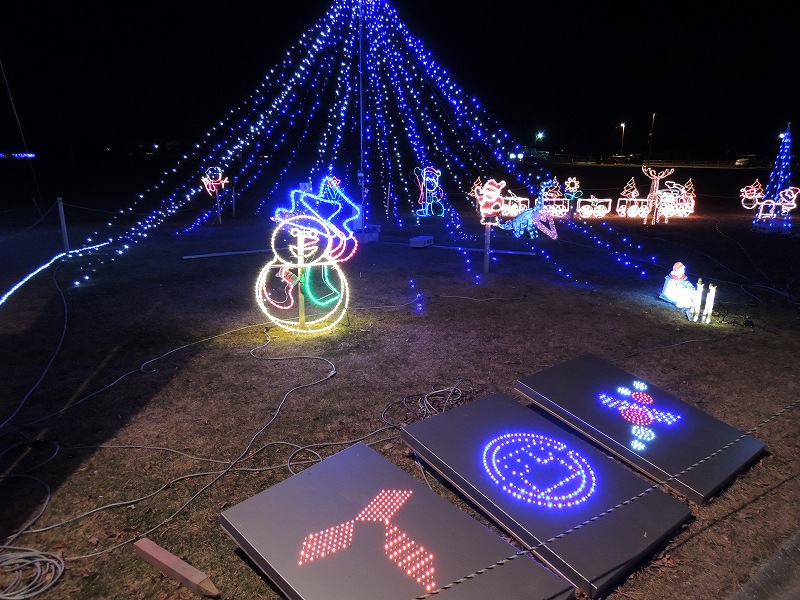 クリスマスツリーや石井町の花「藤」の形をしたイルミネーションなど、